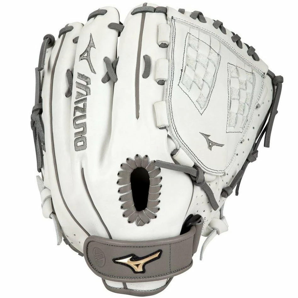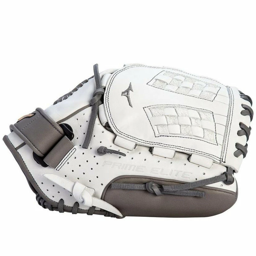 The new Mizuno Prime Elite series is crafted with soft, smooth, white and grey colored leather that is durable with a premium feel. Featuring an UltraSoft Pro Palm Liner for a soft feel and finish. A perforated thumb and pinky panel design reduces weight and increases breathability. Created with Finger Core technology, which is a new finger stall shape that helps improve flexibility and control when making a tough play, while also providing a more comfortable option for players who prefer to shift their ring finger to the pinky slot. Designed with Fastpitch patterns to make Prime Elite an excellent glove choice for serious players wanting to compete at their highest level on the field.